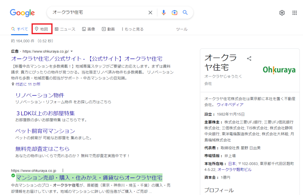 おすすめの探し方がGoogleMapです。Googleブラウザで仲介会社の名称を検索したあと、検索欄の下にある「地図」をクリックするだけで、口コミを確認できます。