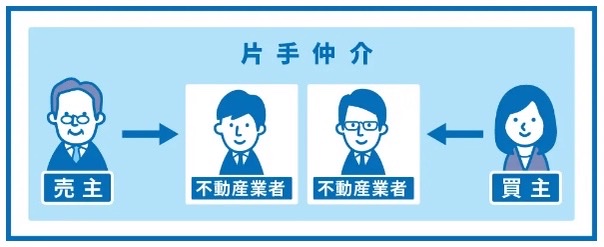一方で、売主はB社で買主はC社が仲介した場合にはB社は売主からC社は買主から仲介手数料をもらいますが、これを片手仲介といいます。