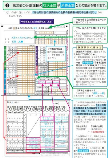 申告書の第三表である分離課税用の書類です。マンションなどの不動産を売却した利益は分離課税表に記入する必要があります。