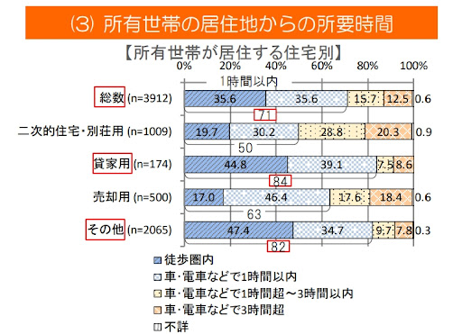 以下のグラフは国土交通省が公表する「令和元年空き家所有者実態調査」の結果ですが、調査対象の空き家総数のうち、約28%は相続人の家から1時間超の距離にあります。