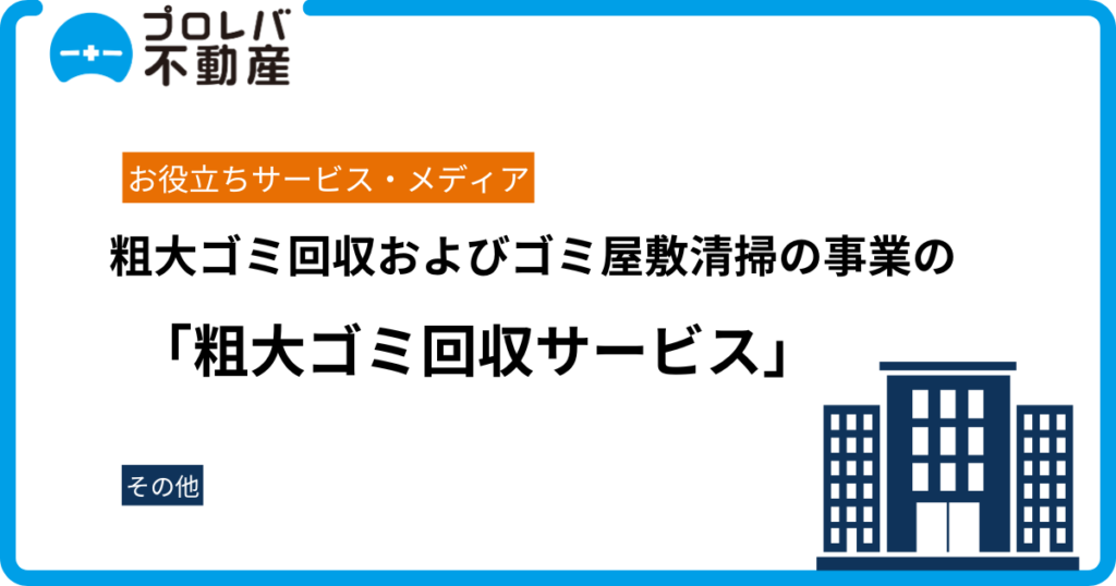 東京都、神奈川県、埼玉県、千葉県を中心に、粗大ゴミ回収およびゴミ屋敷清掃の事業を展開する「粗大ゴミ回収サービス」の公式サイトに、プロレバ不動産が掲載されました。 家庭の片付けを助ける粗大ゴミ回収サービス 粗大ゴミ回収サービスとは 「粗大ゴミ...