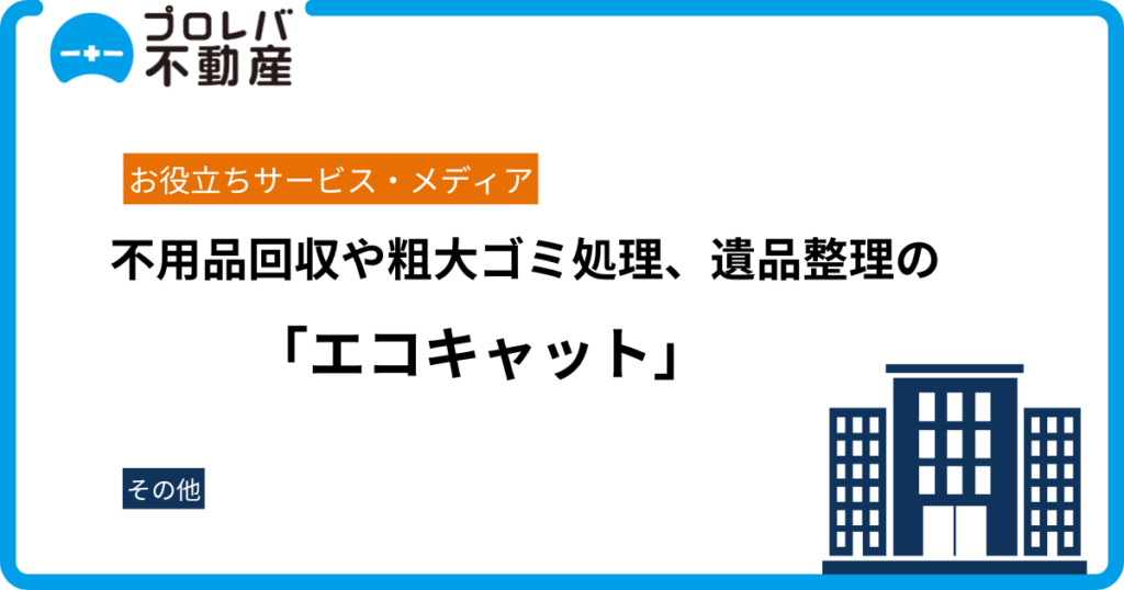 東京都、神奈川県、埼玉県、千葉県を中心に不用品回収や粗大ゴミ処理、遺品整理を行っている「エコキャット」の公式サイトに、プロレバ不動産が紹介されました。 ゴミ処理で困ったらエコキャットの公式サイトへ エコキャットとは エコキャットは、不用品回...