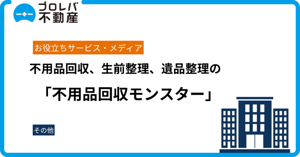 東京都、神奈川県、埼玉県、千葉県で不用品回収や生前整理、遺品整理、ゴミ屋敷清掃サービスを展開する「不用品回収モンスター」の公式サイトに、プロレバ不動産が掲載されました。 ゴミ屋敷清掃を任せるなら不用品回収モンスター 不用品回収モンスターと...