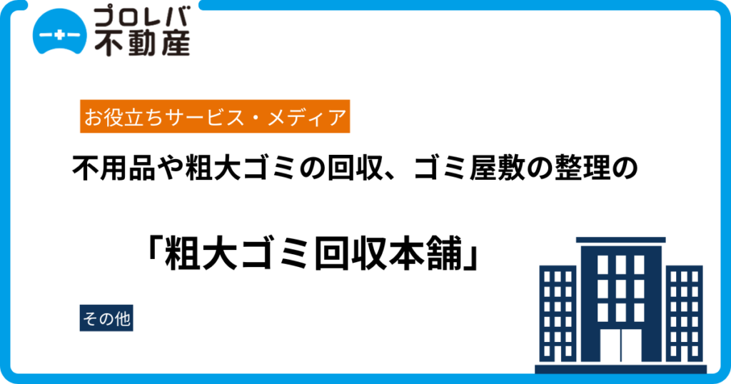 東京都、神奈川県、埼玉県、千葉県で不用品や粗大ゴミ、ゴミ屋敷の掃除を行っている「粗大ゴミ回収本舗」の公式サイトに、プロレバ不動産が紹介されました。 粗大ゴミ回収本舗の評判を公式ページで確認する 粗大ゴミ回収本舗とは 「粗大ゴミ回収本舗」は、...
