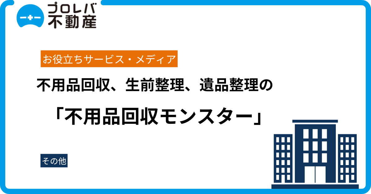 東京都、神奈川県、埼玉県、千葉県で不用品回収や生前整理、遺品整理、ゴミ屋敷清掃サービスを展開する「不用品回収モンスター」の公式サイトに、プロレバ不動産が掲載されました。