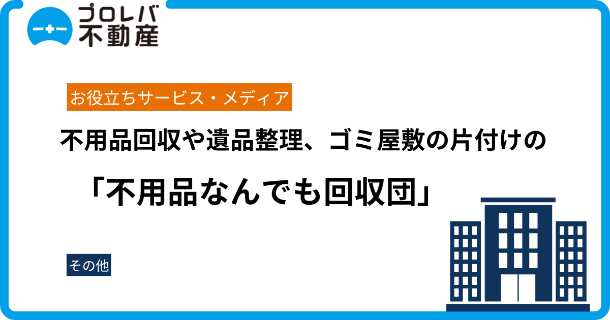 東京都、神奈川県、埼玉県、千葉県を中心に活動する「不用品なんでも回収団」の公式サイトに、プロレバ不動産が掲載されました。不用品回収や遺品整理、ゴミ屋敷の片付けを行う同サービスにて、紹介されています。